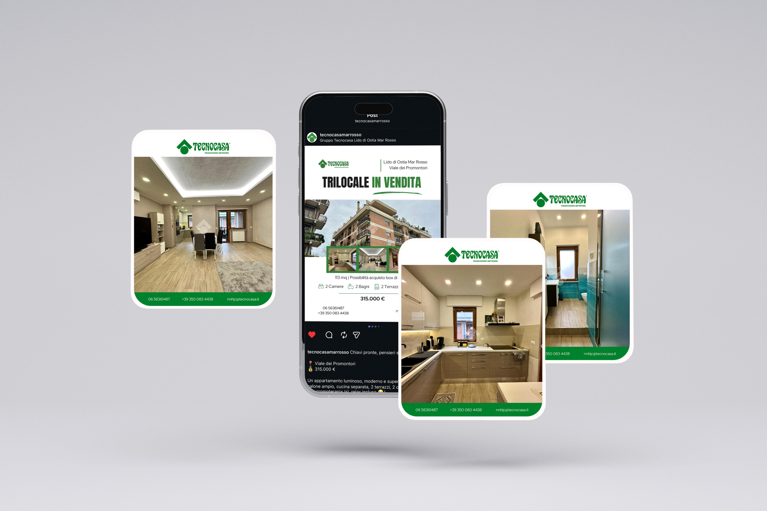 Gestire la comunicazione per un colosso come Tecnocasa significa confrontarsi con un brand già leader, dove la vera sfida è la differenziazione su base locale. Per le filiali di Ostia Mar Rosso e Vermicino, l’obiettivo era duplice: da un lato, uniformarsi all’autorevolezza del marchio nazionale; dall’altro, costruire una forte identità “di zona”. I clienti avevano bisogno di aumentare la brand awareness territoriale, strutturare un’immagine visiva impeccabile e, soprattutto, incrementare il numero di incarichi di vendita attraverso un posizionamento iper-locale.